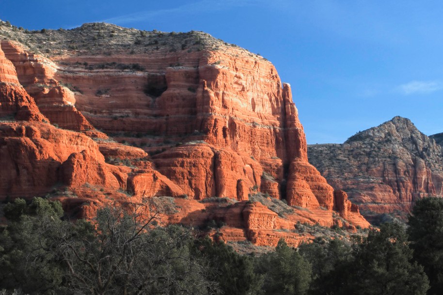 Friends, this hole in the wall opens all kinds of questions for me. Has this been a former hide-out for Butch Cassidy and Sundance? Probably not, no place to park the horses. Does a mountain lion live in the dark recesses of this cave? Not likely as the cave is very near downtown Sedona. Maybe a giant bird makes this cave a home with a giant nest and eggs. Stories to tell the grandchildren about mythical beasts and birds. Again more questions than answers. I love warm red rock and lots of it in Sedona. til Tomorrow MJ