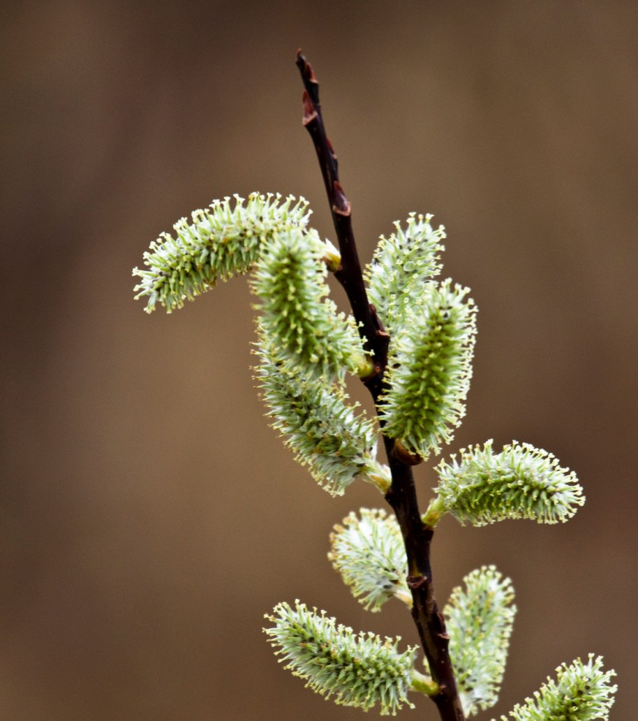 Friends, these pussy willows have gone to seed and all are rushing to be first in line to be photographed. They are really male catkins of the willow tree covered with stamens they appear very early in the spring.  In Crex they are a dominant vegetation in the wet areas. Below is an image of an earlier version of pussy willows.