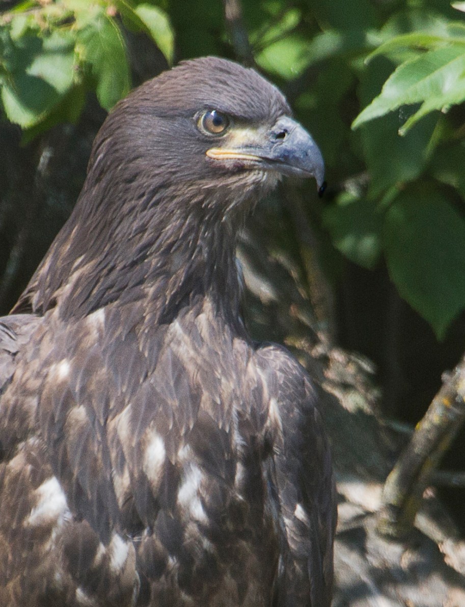 Friends, this is the young Bald eagle chick that i have been following all spring. He is about 10 weeks old and  took his first flight on 6-28-12.  When i came back on the 30th, i fully expected that i would not see him at all, but he was sitting lower in the same tree about 20 feet away from my camera and on eye level.  He is truly a magnificent bird and showing signs of being a fierce warrior and excellent hunter. After our stare down, he again flew away, til Tomorrow MJ