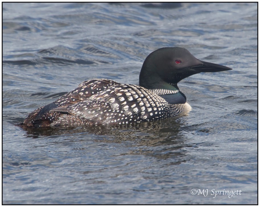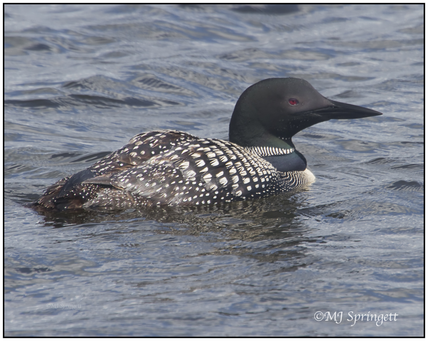Friends, this common loon is sitting high on the water, they can regulate how their body sits in the water, when they are feeding the chicks, they sit very low and sometimes all you see is their heads speeding toward the chicks with a small fish in their bills. Most of the time they dive to go underwater, but sometimes they just slip away under water. Sink or dive that is the option for fish hunting, this bird can stay underwater for up to five minutes before returning to the surface. Β til Tomorrow MJ