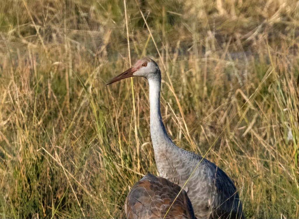 First year cranes are as big as adults but the head is browner, no red cap and paler bill. The second image is a comparison with an adult sad today so not much to say. Enjoy til tomorrow mj