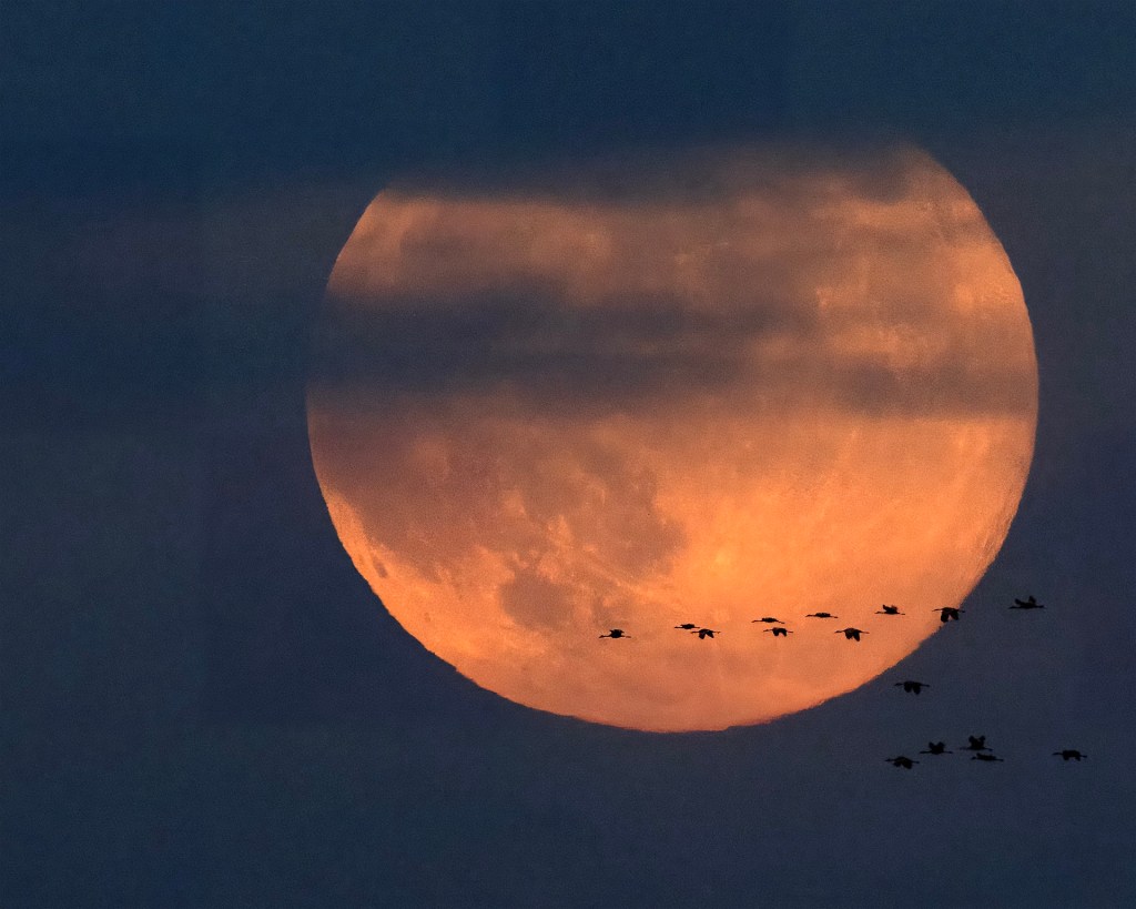 If you ever watch the cranes in the morning on their roost site, you will notice that they all straighten the neck and lean forward in the direction they are going to fly away. My new camera has eye tracking and it is very effective at focusing the eye especially on a moving subject. Til tomorrow Mj