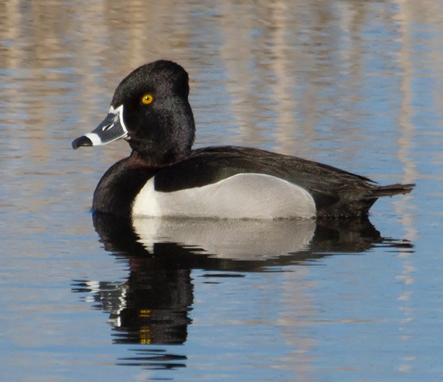 Dear Friends, these ducks are every where at Crex this time of year, they are Ring Necked Ducks due to the brownish ring around their neck, but can be spotted by the prominent ring around the bill. This is male duck. The female is more drab but has she a matching ring around the bill, enjoy til TomorrowMJ