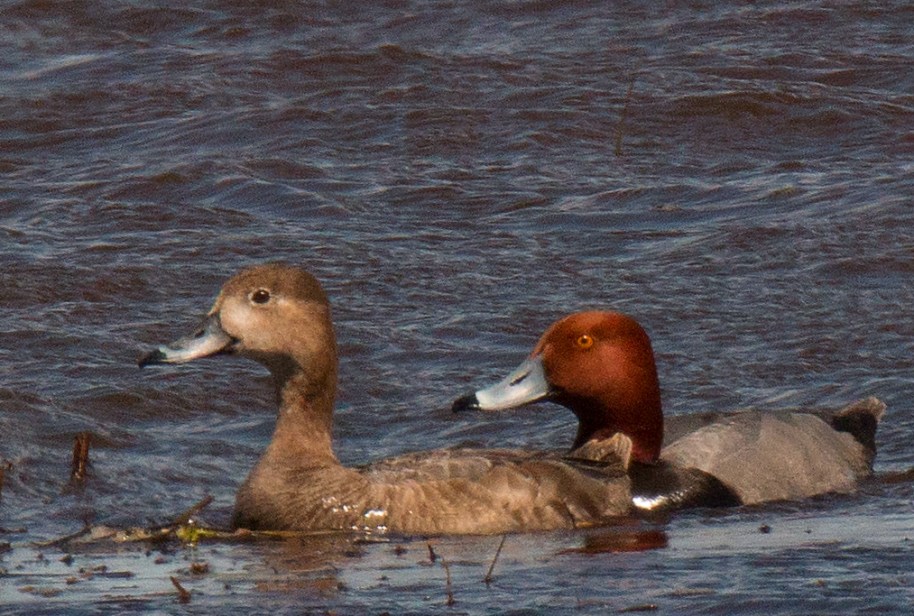 Dear Friends, this pair of red headed ducks were recently found on Phantom Lake in Crex. This image was a stretch for my telephoto lens but they had found a little calm spot on a rough day, so I took their picture. I like the rough water beyond them proof that most of the depth of focus is behind the focus point. til Tomorrow MJ