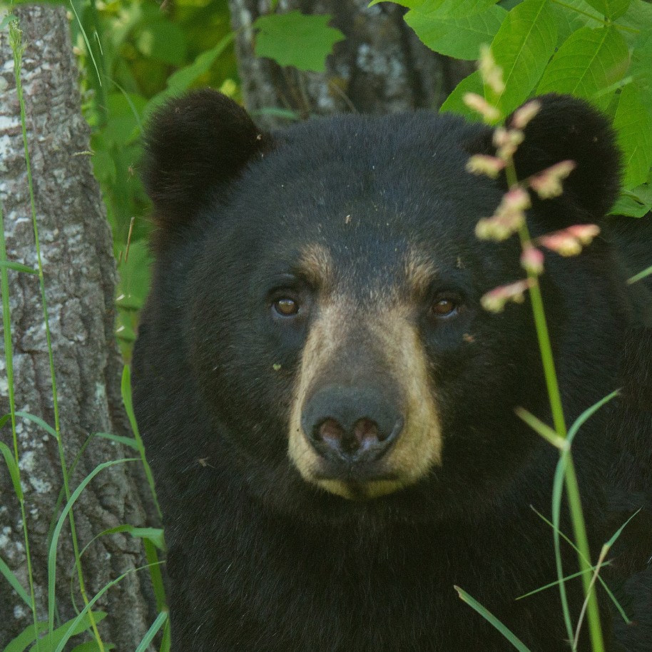 Dear Friends, this bear was in the ditch as we drove by, his head popped up and he scurried into the woods. Sorry for the grass but I did not leave the truck and could not get a good angle. He was huge and wanted to cross the road, the deer flies were attacking and he was looking for a good swim to drown them. Yes I was using a telephoto lens til Tomorrow MJ