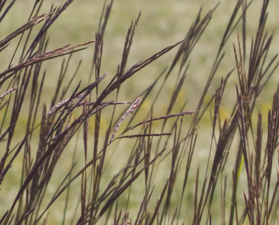 Friends, some fall grasses going to seed in Crex Meadows. I think the grasses are almost as pretty as the flowers you just have to get very close to see their beauty and get the light behind them to bring out the colors. This Indian grass (top) and Big Blue Stem (below) are indicators of a tall prairie eco system, and they both grow 4-5 feet high in parts of Crex exposed to full sunshine. Big Blue Stem has a turkey foot shaped seed head at the top of a dark stem as seen in the image below. til Tomorrow MJ