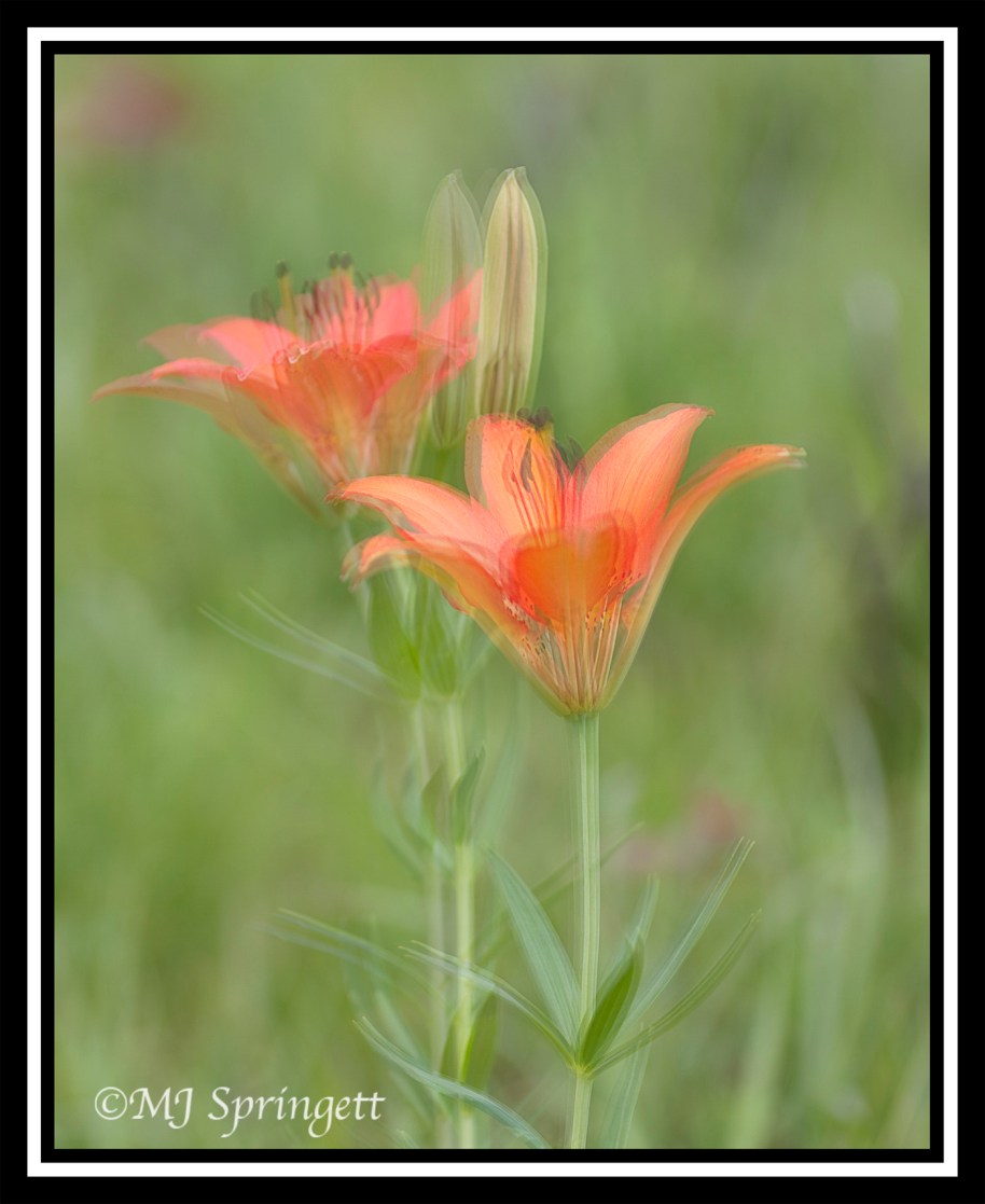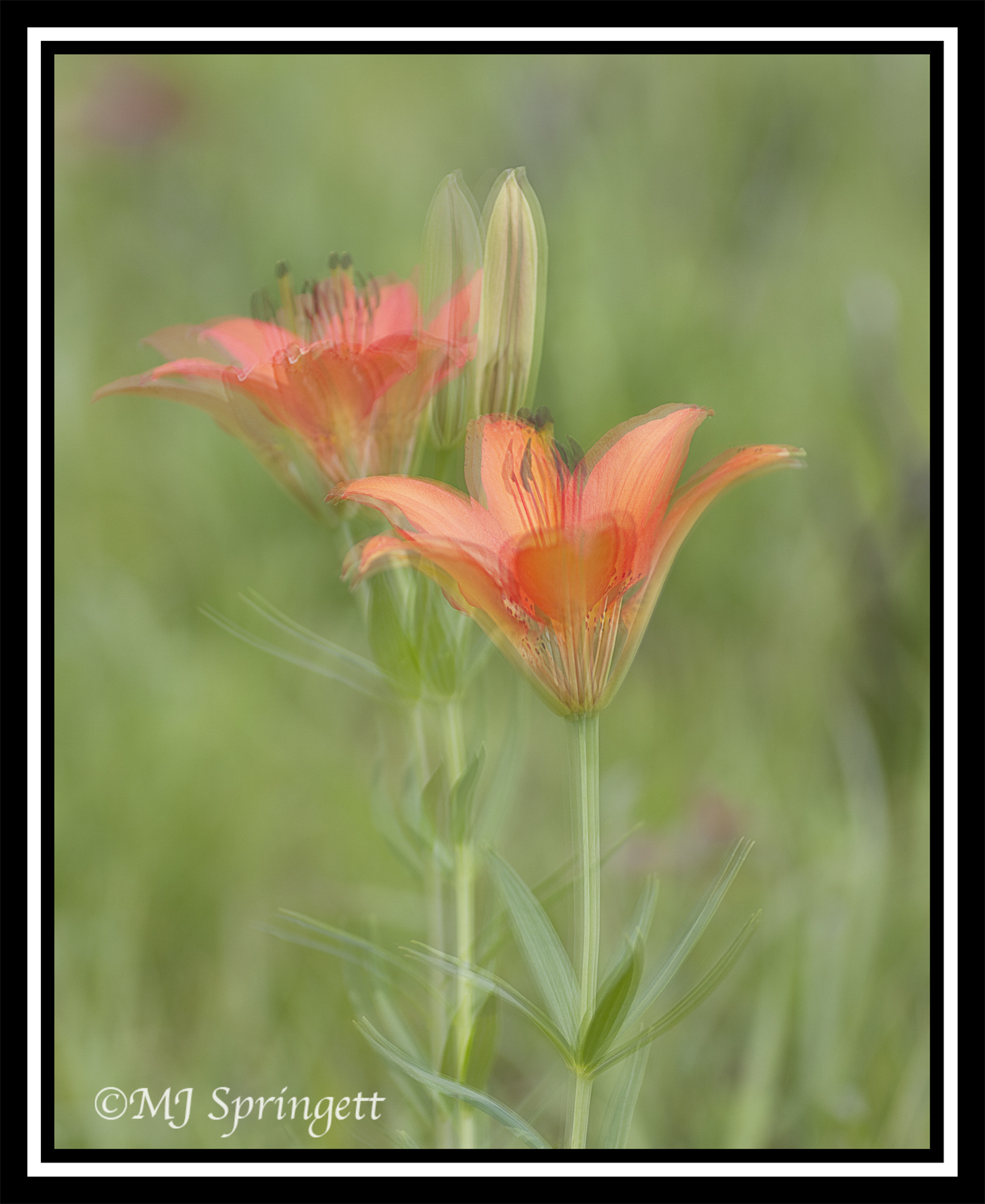 Friends, another experiment with multiple exposures, these lilies were moving in the wind so i have shown them in a high key image with multiple exposures. Photography is an expressive art despite what some think and this expresses what i saw and felt in the Namekagon barrens on a windy hot day in June. Having fun with Photoshop. til Tomorrow MJ