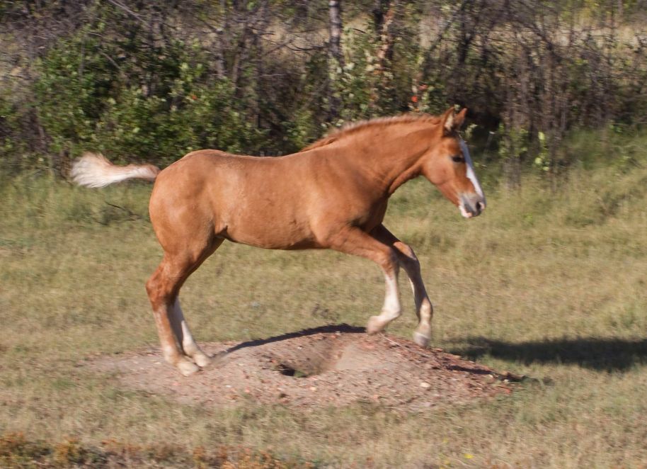 Friends, this beautiful youngster was loping through the prairie dog town and easily jumped a hole. It is deep summer and he has shed his foaling coat to become a sleek wild horse in miniature. He /she is the future. If you wish to read more these wild horses and efforts to domesticate and eventually rid the badlands of these beautiful animals see this blog http://wildhorsesoftrnp.blogspot.com/. These fine folk are dedicated to keeping tabs on the wild horses by riding the badlands, keeping a wild horse registry as well as buying and training horses “culled” from the park. til Tomorrow MJ